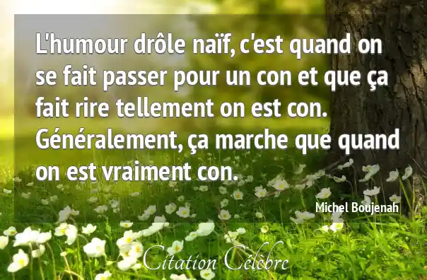 L'humour drôle naïf, c'est quand on se fait passer pour un con et que ça fait rire tellement on est con. Généralement, ça marche que quand on est vraiment con.