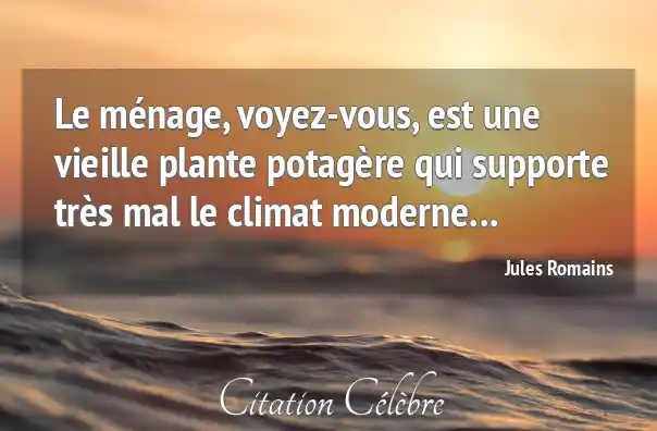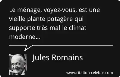 Le ménage, voyez-vous, est une vieille plante potagère qui supporte très mal le climat moderne...