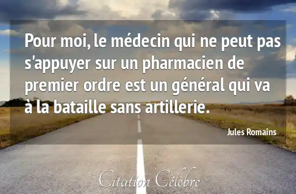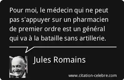 Pour moi, le médecin qui ne peut pas s'appuyer sur un pharmacien de premier ordre est un général qui va à la bataille sans artillerie.