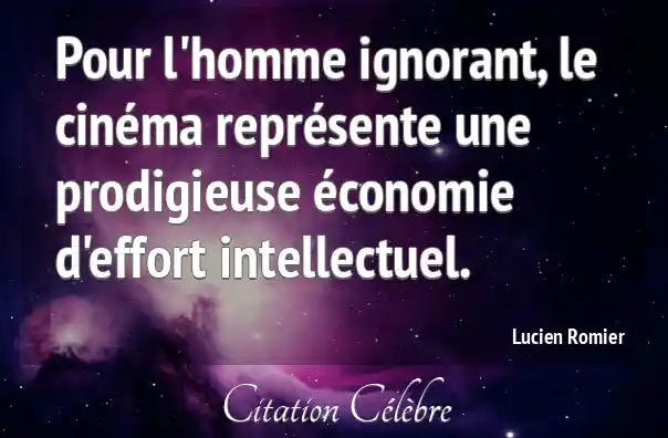Pour l'homme ignorant, le cinéma représente une prodigieuse économie d'effort intellectuel.