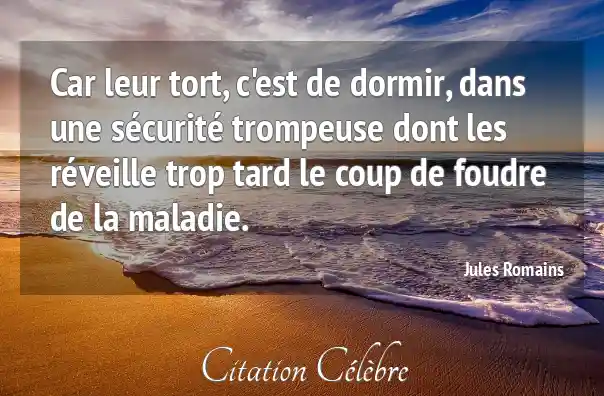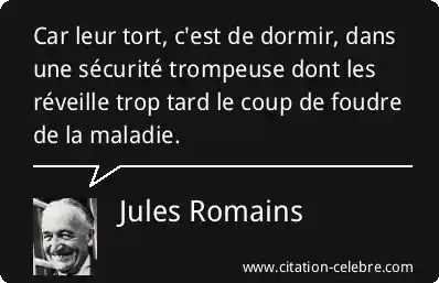 Car leur tort, c'est de dormir, dans une sécurité trompeuse dont les réveille trop tard le coup de foudre de la maladie.