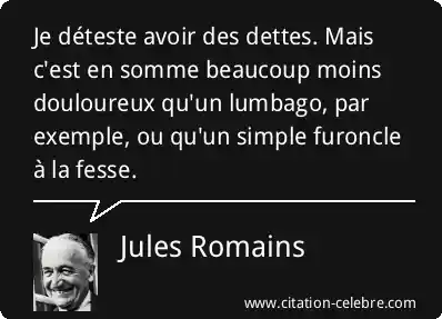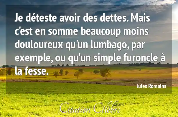 Je déteste avoir des dettes. Mais c'est en somme beaucoup moins douloureux qu'un lumbago, par exemple, ou qu'un simple furoncle à la fesse.