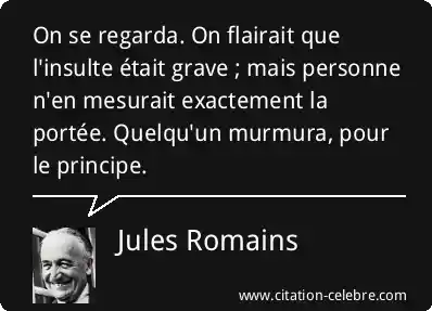 On se regarda. On flairait que l'insulte était grave ; mais personne n'en mesurait exactement la portée. Quelqu'un murmura, pour le principe.