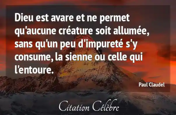 Dieu est avare et ne permet qu'aucune créature soit allumée, sans qu'un peu d'impureté s'y consume, la sienne ou celle qui l'entoure.