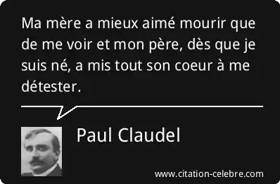 Ma mère a mieux aimé mourir que de me voir et mon père, dès que je suis né, a mis tout son coeur à me détester.