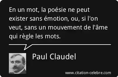 En un mot, la poésie ne peut exister sans émotion, ou, si l'on veut, sans un mouvement de l'âme qui règle les mots.