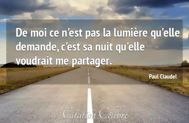 De moi ce n'est pas la lumière qu'elle demande, c'est sa nuit qu'elle voudrait me partager.