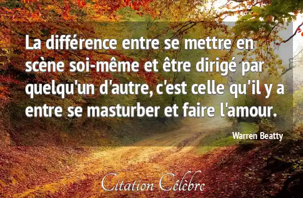 La différence entre se mettre en scène soi-même et être dirigé par quelqu'un d'autre, c'est celle qu'il y a entre se masturber et faire l'amour.