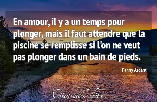 En amour, il y a un temps pour plonger, mais il faut attendre que la piscine se remplisse si l'on ne veut pas plonger dans un bain de pieds.