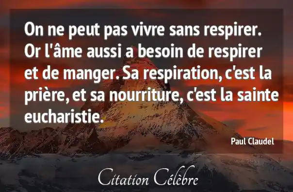 On ne peut pas vivre sans respirer. Or l'âme aussi a besoin de respirer et de manger. Sa respiration, c'est la prière, et sa nourriture, c'est la sainte eucharistie.