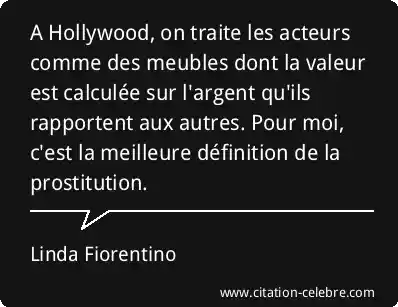 A Hollywood, on traite les acteurs comme des meubles dont la valeur est calculée sur l'argent qu'ils rapportent aux autres. Pour moi, c'est la meilleure définition de la prostitution.