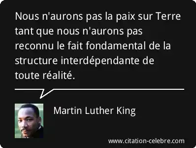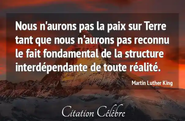 Nous n'aurons pas la paix sur Terre tant que nous n'aurons pas reconnu le fait fondamental de la structure interdépendante de toute réalité.