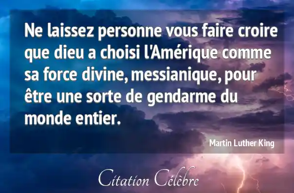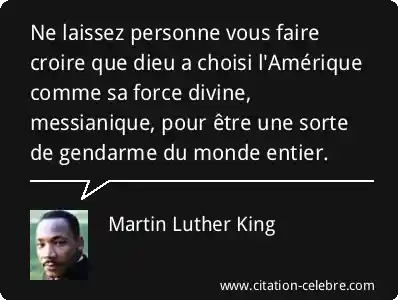 Ne laissez personne vous faire croire que dieu a choisi l'Amérique comme sa force divine, messianique, pour être une sorte de gendarme du monde entier.