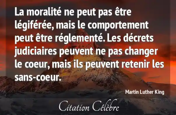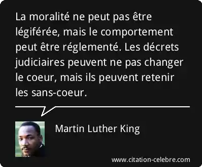 La moralité ne peut pas être légiférée, mais le comportement peut être réglementé. Les décrets judiciaires peuvent ne pas changer le coeur, mais ils peuvent retenir les sans-coeur.