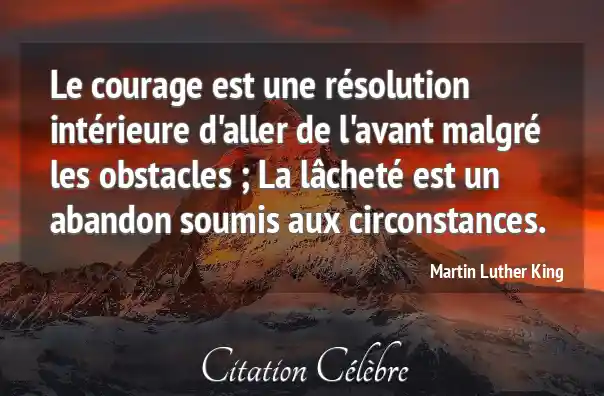 Le courage est une résolution intérieure d'aller de l'avant malgré les obstacles ; La lâcheté est un abandon soumis aux circonstances.
