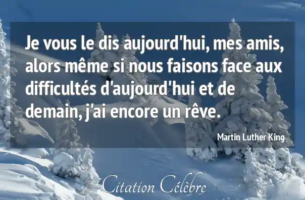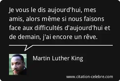 Je vous le dis aujourd'hui, mes amis, alors même si nous faisons face aux difficultés d'aujourd'hui et de demain, j'ai encore un rêve.