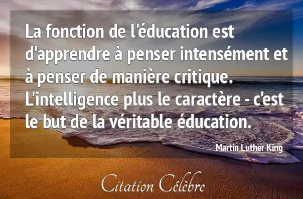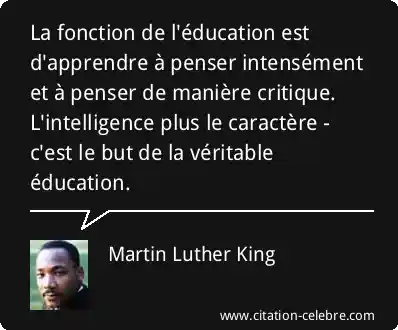 La fonction de l'éducation est d'apprendre à penser intensément et à penser de manière critique. L'intelligence plus le caractère - c'est le but de la véritable éducation.