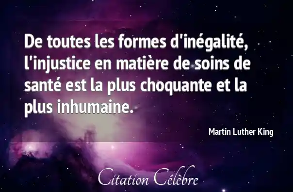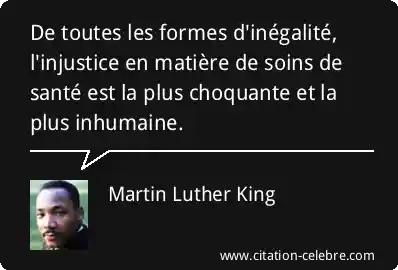 De toutes les formes d'inégalité, l'injustice en matière de soins de santé est la plus choquante et la plus inhumaine.