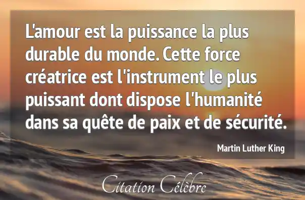 L'amour est la puissance la plus durable du monde. Cette force créatrice est l'instrument le plus puissant dont dispose l'humanité dans sa quête de paix et de sécurité.