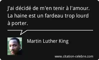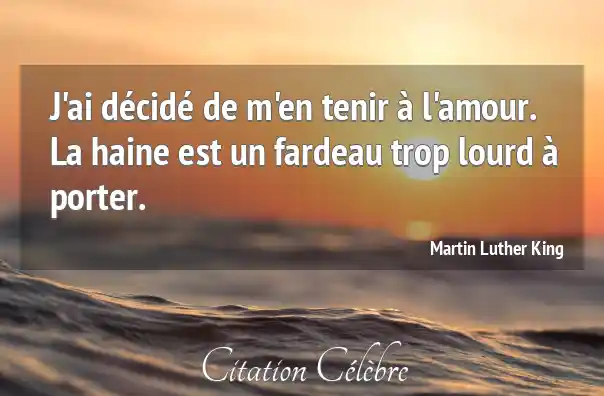 J'ai décidé de m'en tenir à l'amour. La haine est un fardeau trop lourd à porter.