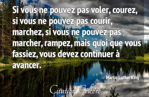 Si vous ne pouvez pas voler, courez, si vous ne pouvez pas courir, marchez, si vous ne pouvez pas marcher, rampez, mais quoi que vous fassiez, vous devez continuer à avancer.