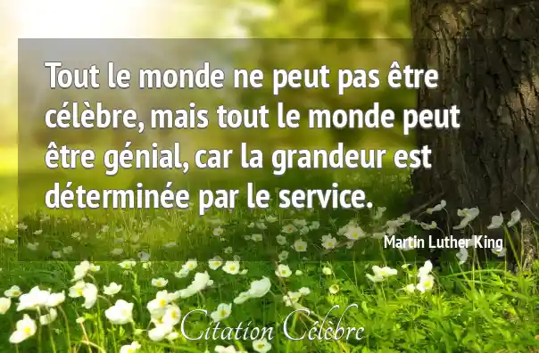 Tout le monde ne peut pas être célèbre, mais tout le monde peut être génial, car la grandeur est déterminée par le service.