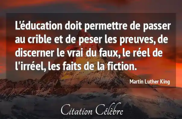 L'éducation doit permettre de passer au crible et de peser les preuves, de discerner le vrai du faux, le réel de l'irréel, les faits de la fiction.