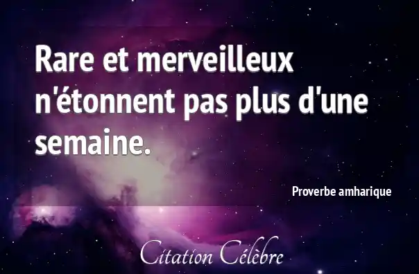 Rare et merveilleux n'étonnent pas plus d'une semaine.