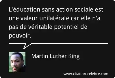 Citation Martin Luther King education : L'éducation sans action sociale est une valeur unilatérale car elle...