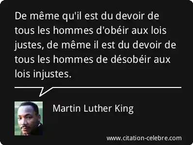 De même qu'il est du devoir de tous les hommes d'obéir aux lois justes, de même il est du devoir de tous les hommes de désobéir aux lois injustes.
