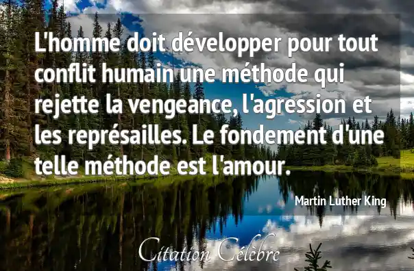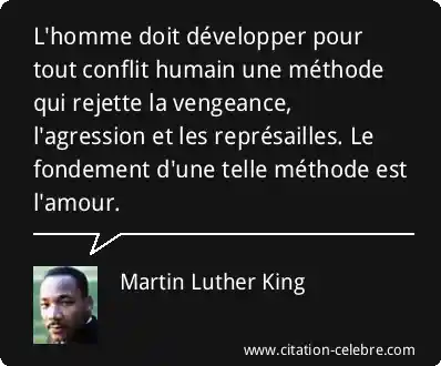 L'homme doit développer pour tout conflit humain une méthode qui rejette la vengeance, l'agression et les représailles. Le fondement d'une telle méthode est l'amour.