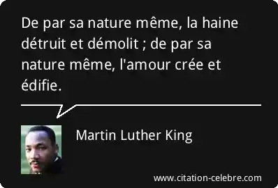 De par sa nature même, la haine détruit et démolit ; de par sa nature même, l'amour crée et édifie.