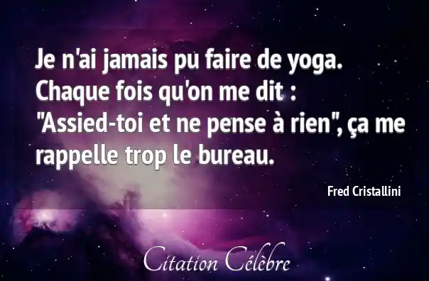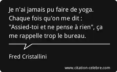 Je n'ai jamais pu faire de yoga. Chaque fois qu'on me dit : "Assied-toi et ne pense à rien", ça me rappelle trop le bureau.