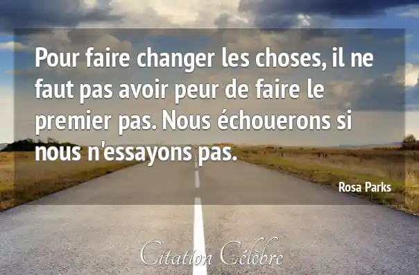 Pour faire changer les choses, il ne faut pas avoir peur de faire le premier pas. Nous échouerons si nous n'essayons pas.