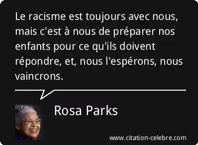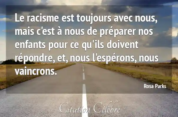 Le racisme est toujours avec nous, mais c'est à nous de préparer nos enfants pour ce qu'ils doivent répondre, et, nous l'espérons, nous vaincrons.
