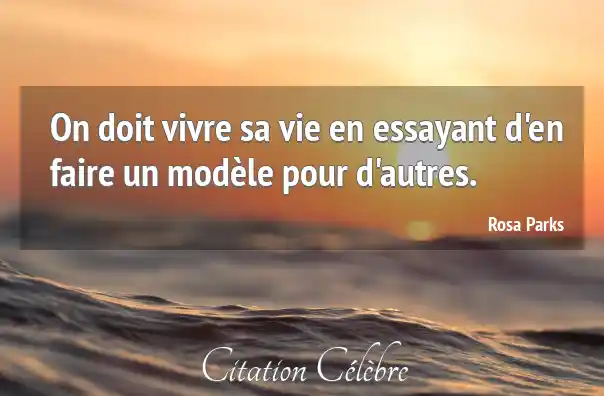 On doit vivre sa vie en essayant d'en faire un modèle pour d'autres.