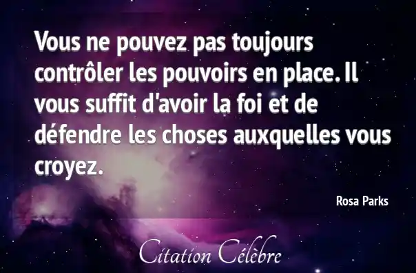 Vous ne pouvez pas toujours contrôler les pouvoirs en place. Il vous suffit d'avoir la foi et de défendre les choses auxquelles vous croyez.
