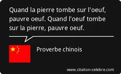 Quand la pierre tombe sur l'oeuf, pauvre oeuf. Quand l'oeuf tombe sur la pierre, pauvre oeuf.