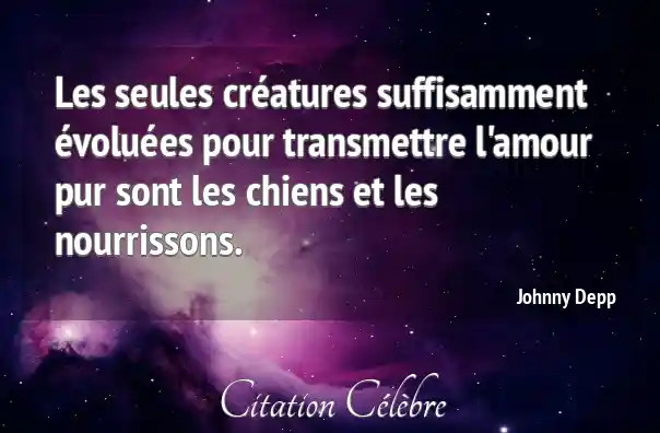 Les seules créatures suffisamment évoluées pour transmettre l'amour pur sont les chiens et les nourrissons.