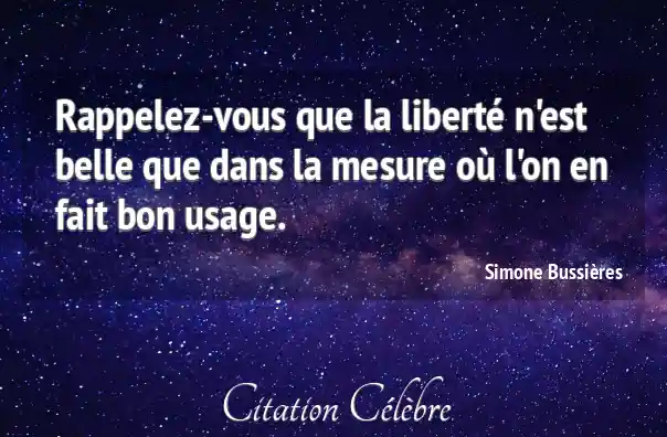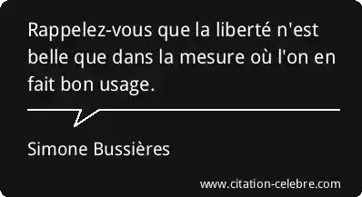 Rappelez-vous que la liberté n'est belle que dans la mesure où l'on en fait bon usage.