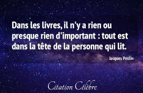 Dans les livres, il n'y a rien ou presque rien d'important : tout est dans la tête de la personne qui lit.
