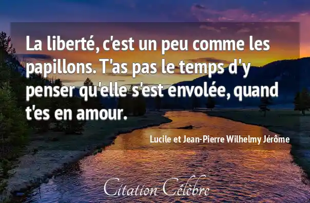 La liberté, c'est un peu comme les papillons. T'as pas le temps d'y penser qu'elle s'est envolée, quand t'es en amour.