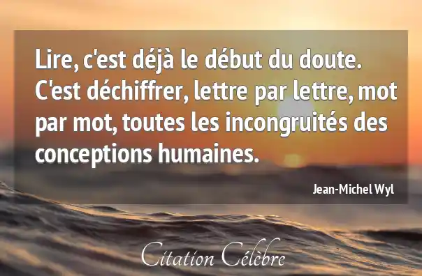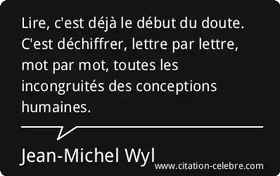 Lire, c'est déjà le début du doute. C'est déchiffrer, lettre par lettre, mot par mot, toutes les incongruités des conceptions humaines.