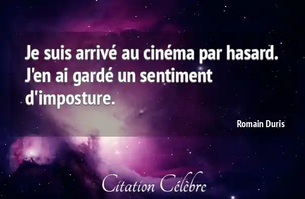Je suis arrivé au cinéma par hasard. J'en ai gardé un sentiment d'imposture.