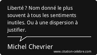 Liberté ? Nom donné le plus souvent à tous les sentiments inutiles. Ou à une dispersion à justifier.