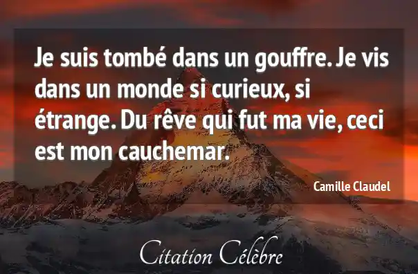 Je suis tombé dans un gouffre. Je vis dans un monde si curieux, si étrange. Du rêve qui fut ma vie, ceci est mon cauchemar.