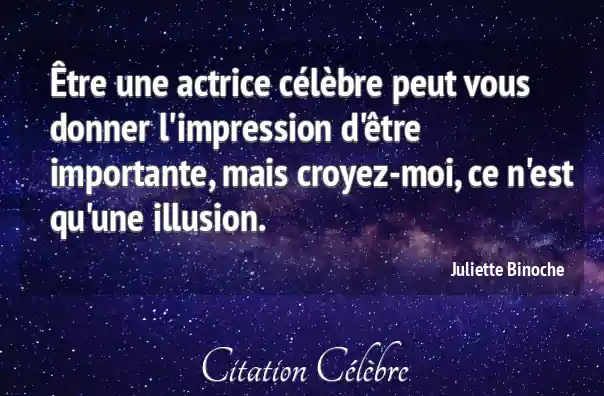 Être une actrice célèbre peut vous donner l'impression d'être importante, mais croyez-moi, ce n'est qu'une illusion.