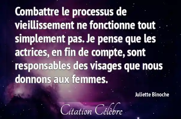 Combattre le processus de vieillissement ne fonctionne tout simplement pas. Je pense que les actrices, en fin de compte, sont responsables des visages que nous donnons aux femmes.