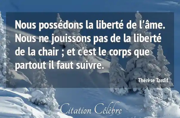 Nous possédons la liberté de l'âme. Nous ne jouissons pas de la liberté de la chair ; et c'est le corps que partout il faut suivre.