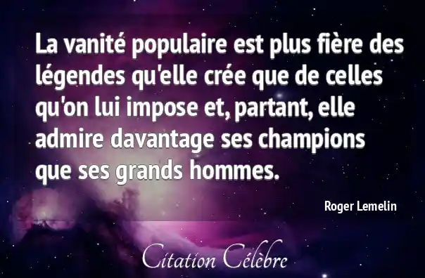 La vanité populaire est plus fière des légendes qu'elle crée que de celles qu'on lui impose et, partant, elle admire davantage ses champions que ses grands hommes.